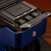 Grand Tour pairs a Cobalt Blue finish with woven Atelier Saddle leather panels to create a configuration that feels inspired by long distance driving and interiors built for time well spent on the road. The genuine woven leather introduces warmth and structure across the front of the machine, and because the material is real, each panel carries subtle variation that gives every machine its own character. Under the Line1 downlighting, the surface of the leather reveals depth that complements the clarity of the blue exterior without overwhelming its presence. A complementary emblem completes the composition with a balanced finishing detail that ties the palette together. Built with a stainless steel brew path and designed for Nespresso OriginalLine compatible capsules, it combines everyday convenience with materials chosen for durability and consistency. The result is a composed, travel minded configuration that fits naturally into kitchens and spaces where comfort, craftsmanship, and quiet momentum set the tone for the day.