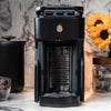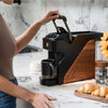 Black Walnut pairs a Satin Black finish with hand scalloped Walnut panels to create a configuration that feels warm, confident, and materially grounded. The deeper tone of the Walnut brings a richer contrast to the black exterior, and because the wood is real, each set of panels carries its own grain pattern that gives every machine a distinct presence. Under the Line1 downlighting, the scalloped surface reveals layered depth across the natural contours of the wood, highlighting the texture without overpowering the composition. A Gold pinecone emblem adds a refined accent that ties the darker palette together and reinforces the sense of intention behind the spec. Built with a stainless steel brew path and designed for Nespresso OriginalLine compatible capsules, it combines everyday convenience with materials chosen for durability and consistency. The result is a composed, character driven configuration that fits naturally into kitchens and interiors where warmth and material authenticity define the space.