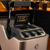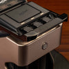 Studio Gold pairs a Palladium Metallic finish with the sculpted Black Studio Wave hero panel to create a configuration that feels deliberate, architectural, and grounded in contrast that reveals itself slowly over time. The layered black surface introduces structure across the front of the machine, and under the Line1 downlighting the contours of the wave pattern become more pronounced as light moves across the panel throughout the day. A Nickel pinecone emblem completes the composition with a restrained accent that keeps the palette cohesive while reinforcing the machines material clarity. Built with a stainless steel brew path and designed for Nespresso OriginalLine compatible capsules, it combines everyday convenience with materials chosen for durability and consistency. The result is a composed, studio minded configuration that fits naturally into kitchens and spaces where precision and proportion define the atmosphere.