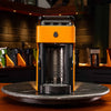 Sunburst pairs a Signal Orange finish with hand scalloped White Oak panels to create a configuration that feels bright, energetic, and lively from the very first pour. The natural oak introduces warmth and texture across the front of the machine, and because the wood is real, each panel carries subtle variation that gives every machine its own presence. Under the Line1 downlighting, the scalloped contours reveal layered depth that balances the vibrancy of the orange exterior. A Nickel pinecone emblem completes the composition with a clean finishing accent that ties the palette together. Built with a stainless steel brew path and designed for Nespresso OriginalLine compatible capsules, it combines everyday convenience with materials chosen for durability and consistency. The result is a vivid, uplifting configuration that fits naturally into kitchens and spaces where energy and craftsmanship shape the start of the day.