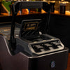 The Manzelli pairs a Ram TRX Gray Metallic finish with Black Studio Wave panels to create a configuration that feels engineered, composed, and ready for action. The sculpted Studio Wave introduces subtle movement across the front of the machine, and because the material is solid and real, it carries a consistent presence that gives the machine a confident profile. Under the Line1 downlighting, the wave pattern catches light to reveal layered depth and motion that complement the gray metallic exterior. An Iridescent pinecone emblem adds a refined accent that ties the palette together and highlights the premium attention to detail. Built with a stainless steel brew path and designed for Nespresso OriginalLine compatible capsules, it combines everyday convenience with materials chosen for durability and consistency. The result is a purposeful, motorsport-inspired configuration that fits naturally into kitchens and spaces where form and function meet.