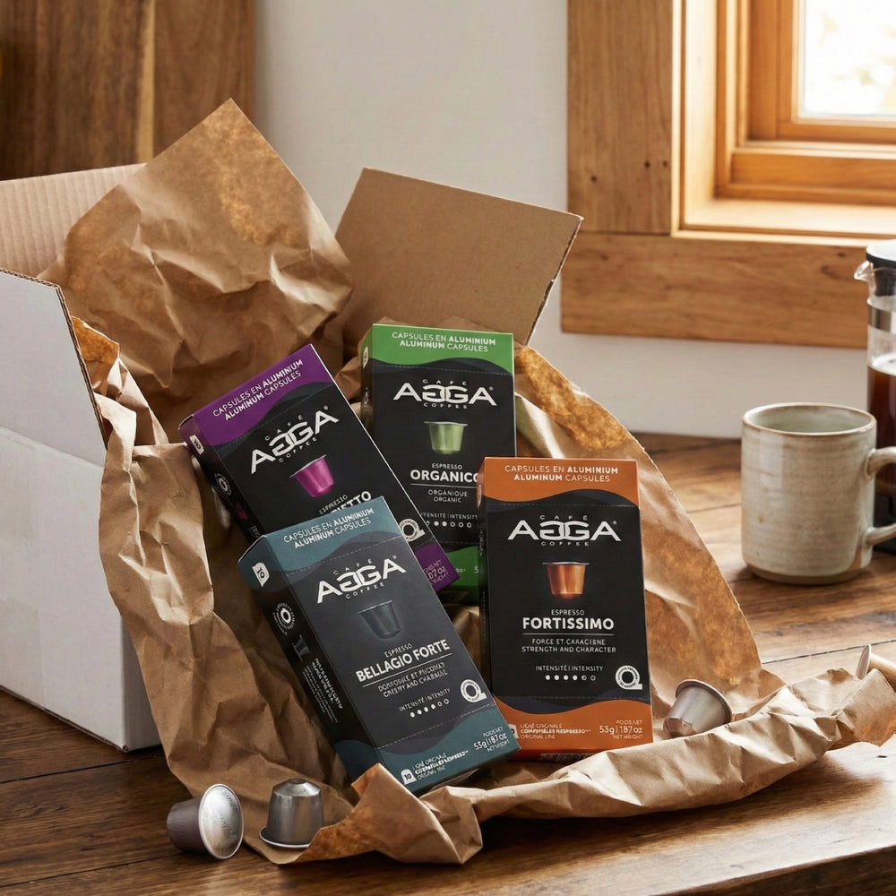 Café Agga is a three-generation, family-owned coffee roaster based in Laval, Quebec, with roots tracing back to Cameroon and a global history of sourcing and roasting. What truly sets them apart is that they handle everything in-house - from green-bean selection and roasting to grinding, packaging, and Nespresso OriginalLine-compatible capsule production, ensuring each cup reflects their commitment to quality, tradition, and craftsmanship.