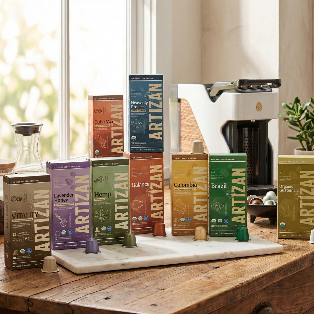Artizan Coffee is a pioneer in bringing true specialty-grade coffee into the capsule format, launching the first USDA-Organic Nespresso-compatible pods back in 2013. Roasted in small batches in South Florida, their lineup spans everything from traditional single-origins and global blends to flavored capsules and innovative options like hemp and mushroom coffee. They focus on traceability, sustainability, and flavor-first craftsmanship - offering one of the widest and most unique capsule selections in the world.
